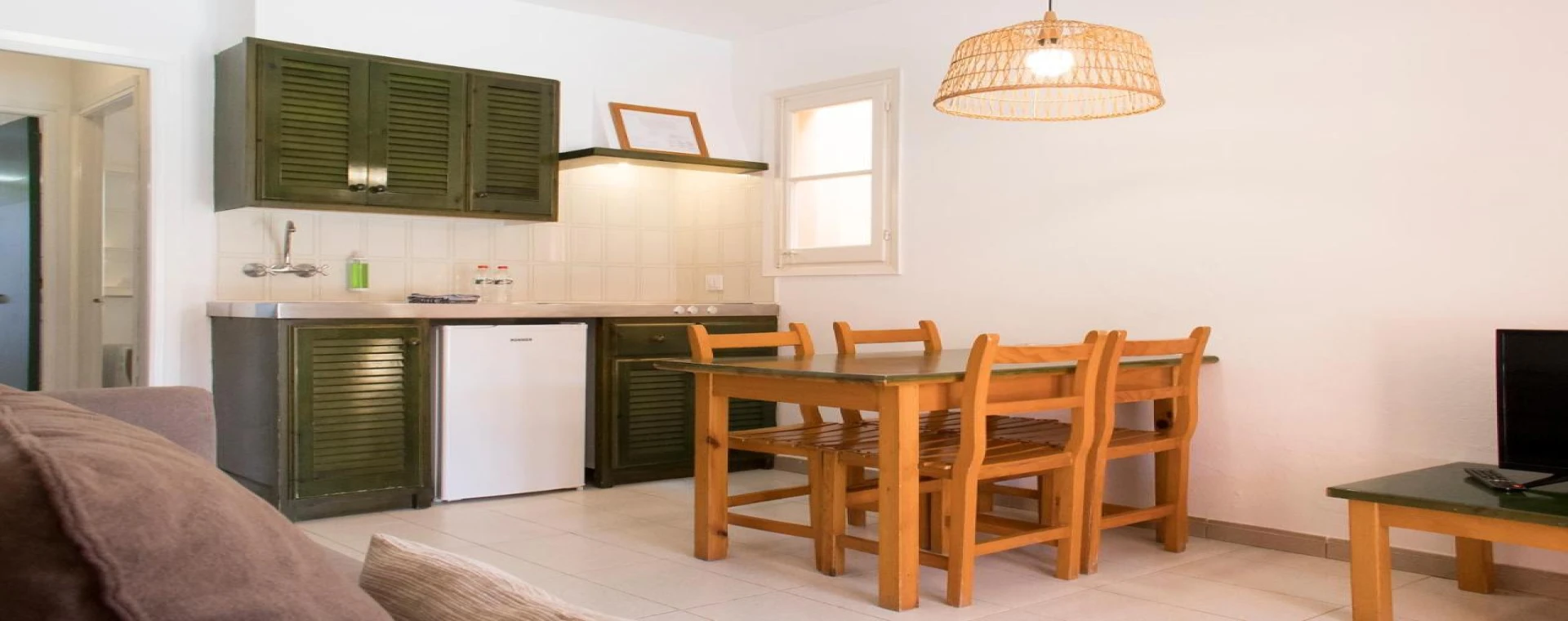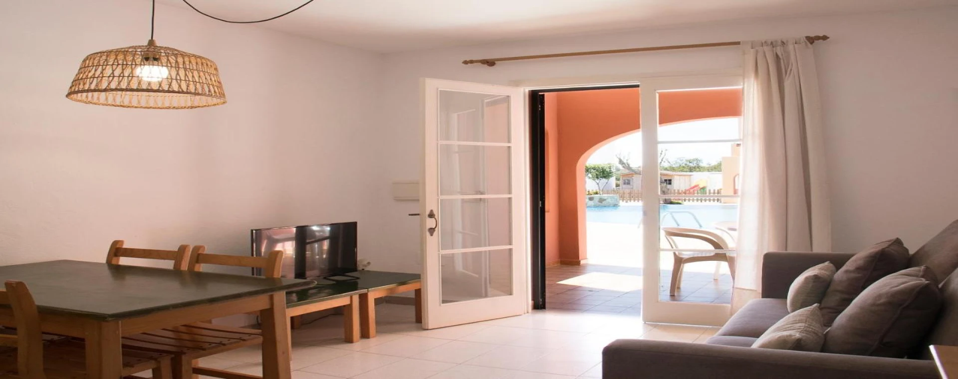 Aparthotel Club Andria is a group of apartments where you will enjoy your peaceful holidays with family and friends. There is a bar service at the swimming pool and spacious garden areas with a playground. At the restaurant, you will be able to taste a great variety of typical Mediterranean food. If you wish to practice any sport, hobby, or go for a trip, you could ask our staff, they will advise you about it. Aparthotel Club Andria is located 2 km away from Ciutadella and 300m away from Santandria beach. There is a public bus stop right at the entrance of the aparthotel. Snack-bar Swimming pool Free - hammocks Playground Football field Mini-golf Car rental Money exchange Crib Safekeeping of valuables Multilingual staff