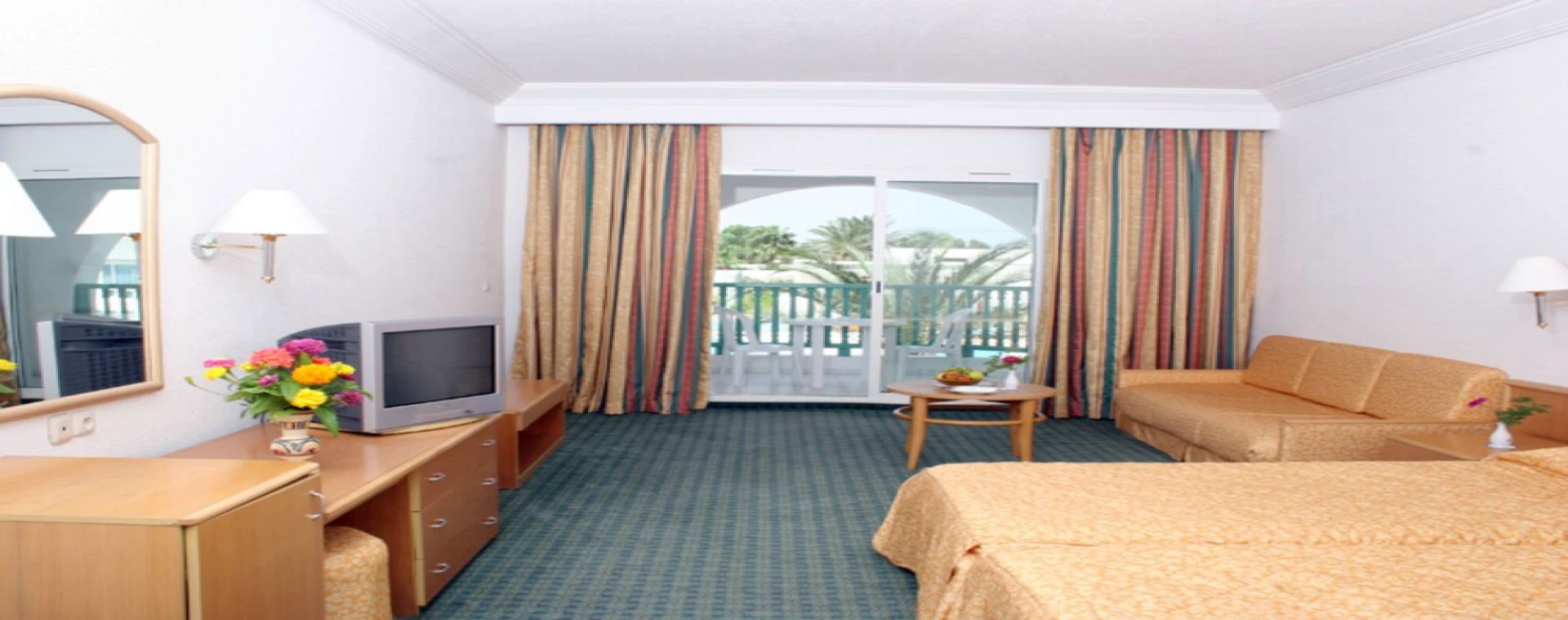 The hotel is located within walking distance of Monastir city centre which is around 1 km away. The marina is a 5-minute walk and the airport is approximately 1 0 kms from the hotel. The air-conditioned spa complex welcomes guests in a lobby with 24-hour reception, TV lounge, caf¿bar and a restaurant. Business guests will appreciate the conference facilities, and guests arriving by car may leave their vehicle in the car park. Internet access, room and laundry services, and a b icycle hire service are also available. Each unit features an en- suite bathroom , air conditioning and central heating, and a private balcony or terrace. Other in-room amenities provided are satellite TV, Internet access, a safe and a mini fridge. Leisure facilities include 3 swimming pools, a gym and a SPA centre. Gue sts may additionally enjoy a workout in the on-site gym.