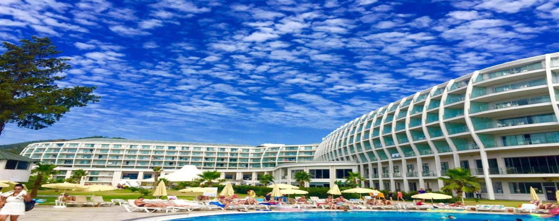 The hotel also houses 7 restaurants that serve breakfast, lunch, dinner and snacks from varied range of Turkish and international cuisines in both buffet and A La Carte style. Apart from that, the hotel has 7 bars on its premises that serve a range of alcoholic and non-alcoholic beverages. The hotel has over 600 well-decorated rooms on offer. This happens to be a perfect destination for vacationers looking for a sunny, relaxing and a fun holiday.
