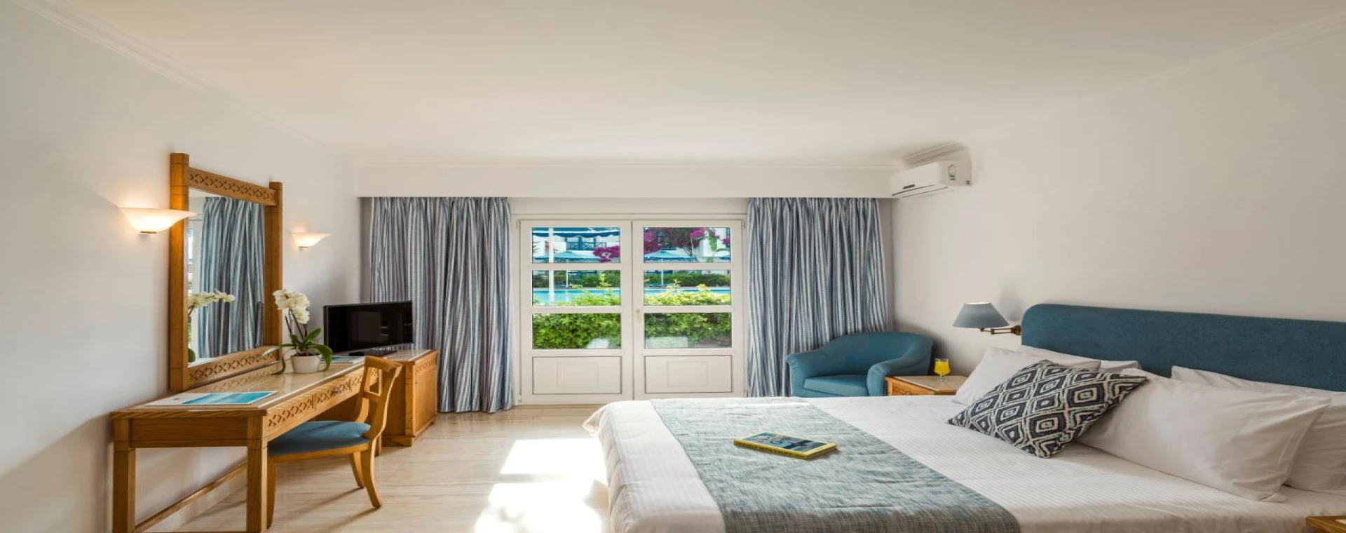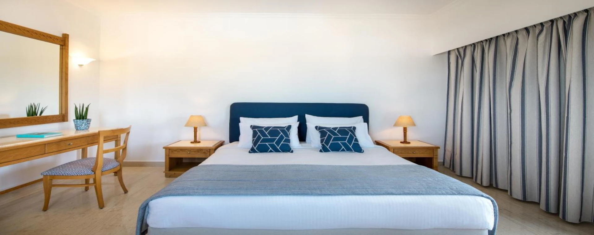 Mitsis Ramira Beach Hotel represents the epitome of service in a unique five-star beach hotel. Located at a short distance of only 3.5 km from the city of Kos, you can easily visit the town while at the same time staying fit by either walking or biking towards it, starting from the awarded with Blue Flag 2019 beach in front of the hotel. The all-inclusive Mitsis Ramira is designed to fulfill the expectations of the most demanding guest, offering high quality services in a secluded and quiet setting. Guest accommodation includes 338 rooms, of which 16 with an individual swimming pool, all finely decorated and equipped with all modern comforts. Both for guests looking for action holidays and those wishing to relax, Mitsis Ramira offers a variety of selected recreational activities for all tastes. Seawater swimming pools, a tennis court, beach volley, beach soccer, mini soccer, mini golf, air hockey, hockey, darts, fishing lessons, cycling, trekking and many other activities, such as horse riding, paintball and diving are some of the things you can enjoy while staying at Mitsis Ramira.