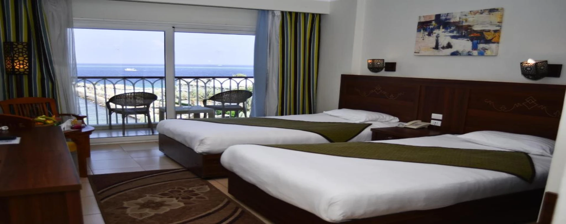 The rooms in the hotel are categorised as Double or Twin Room with Partial Sea View, Triple Room with Partial Sea View, Single Room with Sea View and Double or Twin Room with Partial Sea View - Egyptians and Residents Only. All the rooms have all the facilities that include air conditioner, flat screen TV, double bed, table, chair and much more.
