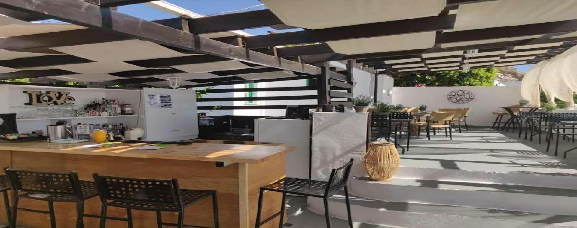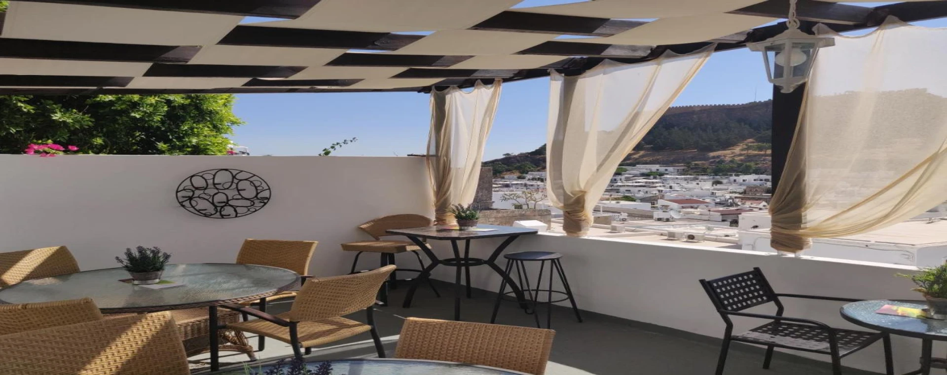 Guests at XenonesLindos can prepare their own breakfast, drinks, and snacks to enjoy either in their room or on the rooftop terrace, which offers panoramic views of the coastline and relaxing music ambiance.